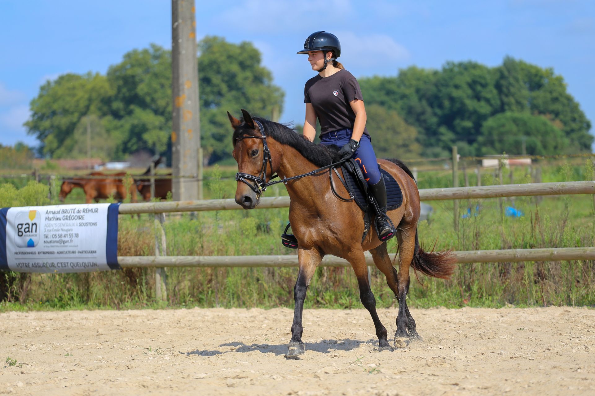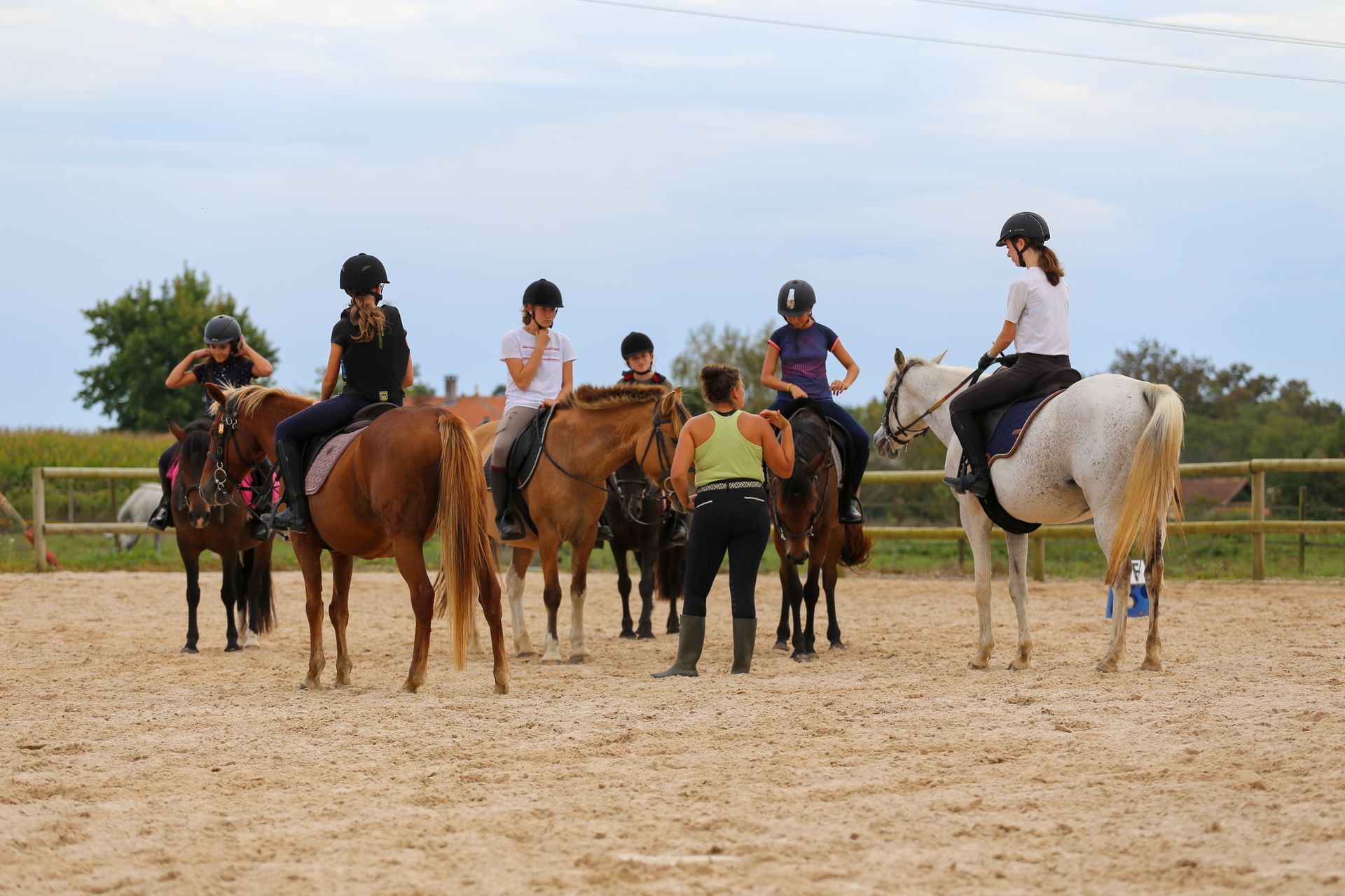 Nos enseignantes enseignent des exercices qui vous feront progresser. Vous maîtriserez les différentes allures. Les entraînements peuvent en outre se concentrer sur un objectif précis tel que le passage au galop, les sorties en concours en saut d'obstacle, en dressage ou encore en concours complet.